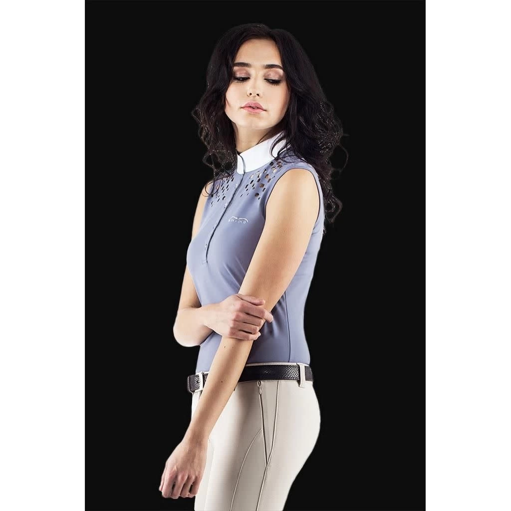 Sleeveless cool competition shirt with laser cut design across the top for extra breathability.