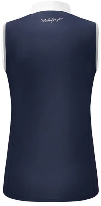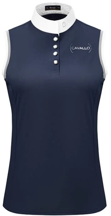 Tailored ladies Show/Competition sleeveless pique shirt with extended back section and sparkly crystal buttons.