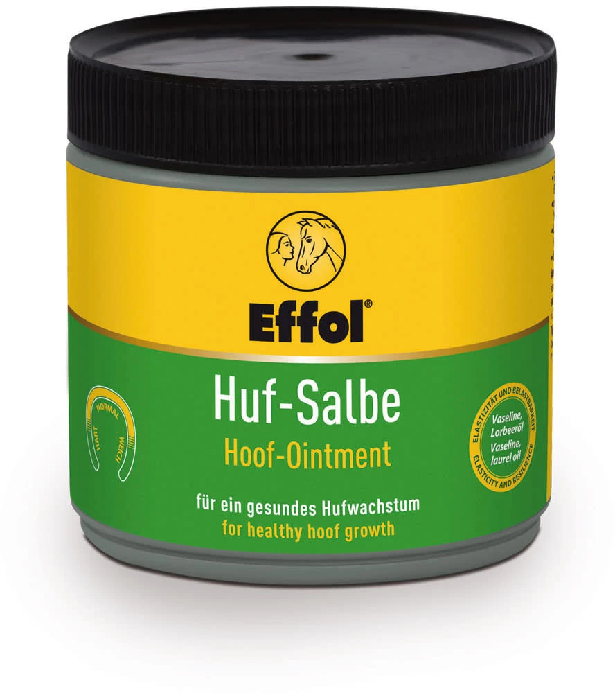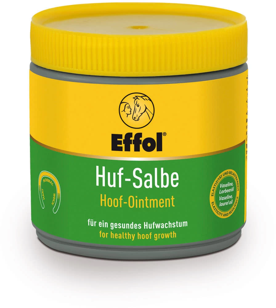 Effol Hoof-Ointment ensures healthy hoof growth and also has a disinfecting effect. The combination of laurel and thymol effectively helps to protect against hoof diseases. Vaseline forms a water-repellent and dirt-repellent film which protects the hoof against outside influences.