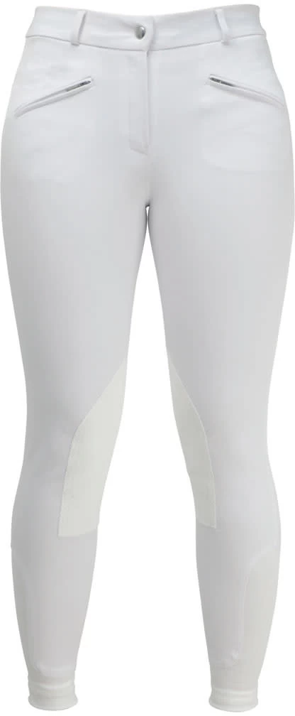Reinforced Alos knee patches and a no bulk stretch hem ankle combine with the comfortable, four way stretch material of the breech to create a secure fit.
