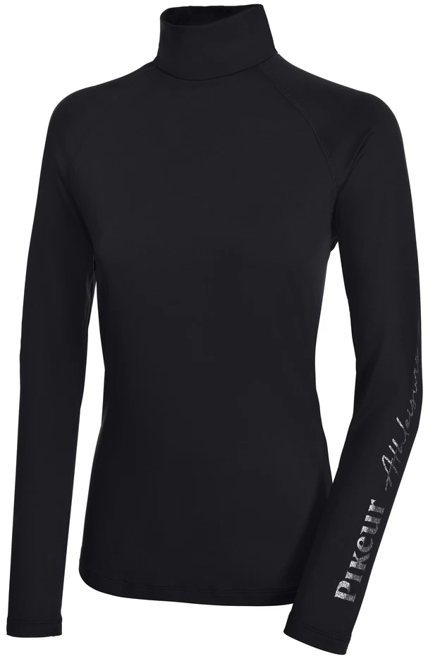 Polo neck style top in a technical fabric which is smooth on the outside and brushed on the inside for comfort and warmth. Pikeur logo on left sleeve.