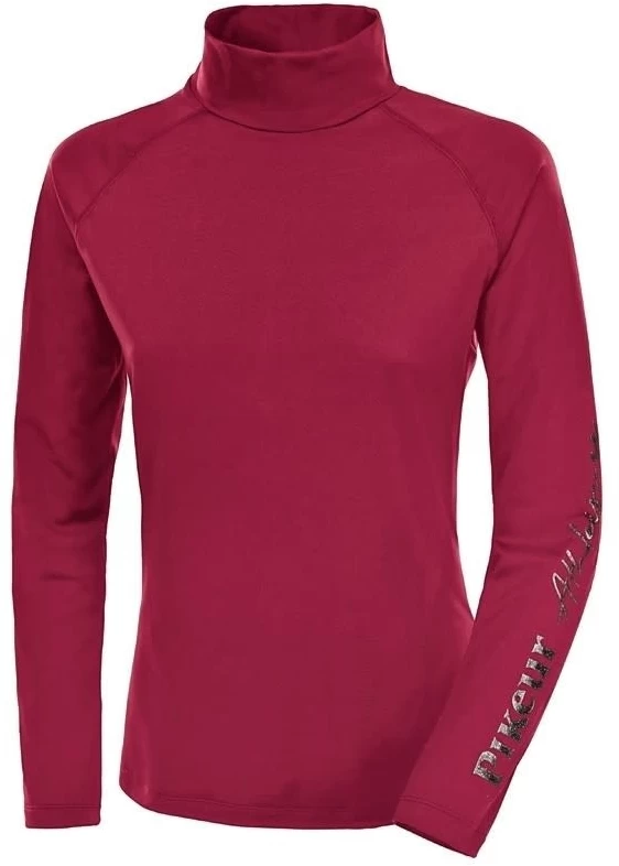 Polo neck style top in a technical fabric which is smooth on the outside and brushed on the inside for comfort and warmth. Pikeur logo on left sleeve.